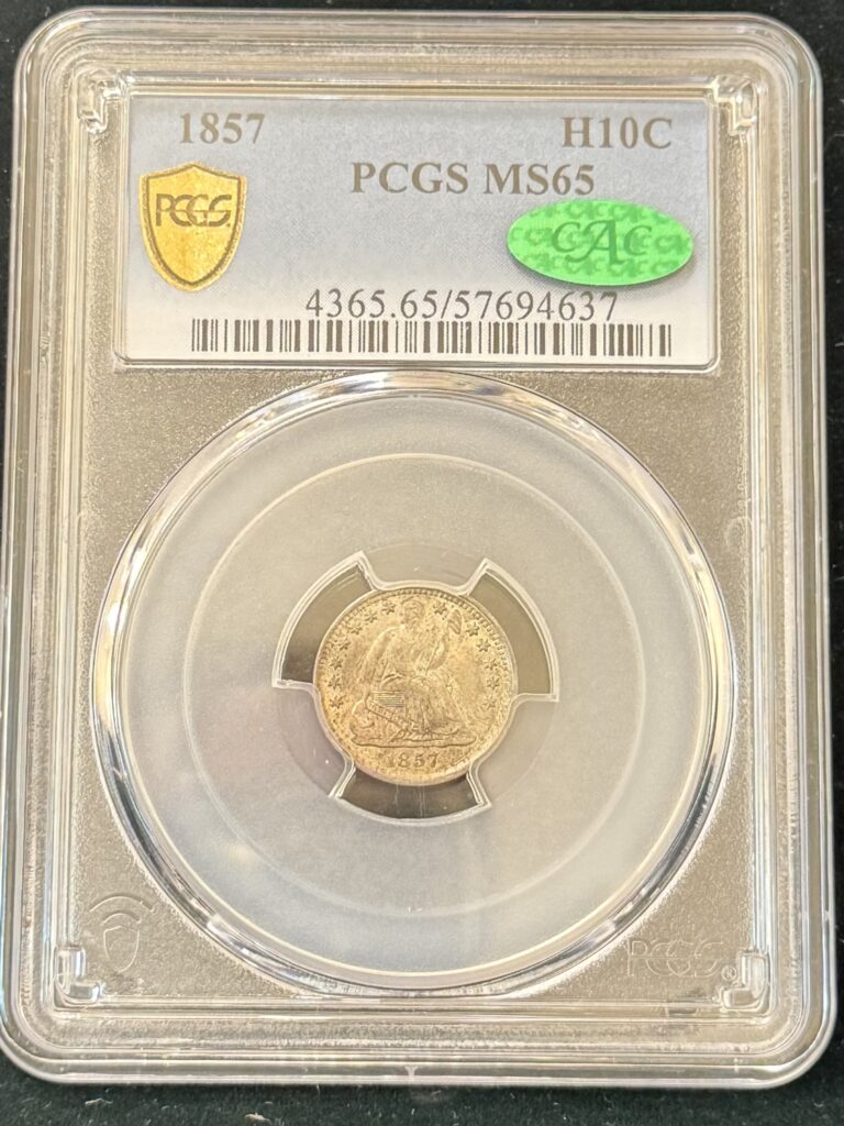 The 1857 Half Dime in MS65 CAC condition embodies both historical significance and investment-level scarcity, offering collectors an opportunity to own one of the finest known survivors from this pivotal period in U.S. coinage.